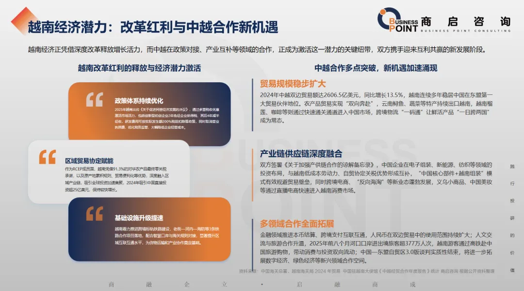 越南经济正凭借深度改革释放增长活力,而中越在政策对接、产业互补等领域的合作,正成为激活这一潜力的关键纽带,双方携手迎来互利共赢的新发展阶段。