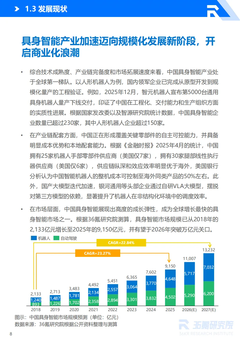 当前,在政策引领、技术突破与市场需求的共振驱动下,中国具身智能产业正迈入快速发展的新阶段。在此背景下,资本市场布局也日益活跃。公开资料数据显示,2025年前11个月具身智能产业融资额达到334.73亿元,是2024年同期的4倍;截至2025年12月21日,全年融资事件超305起,总额超过380亿元,参与的投资机构数量超过600家。