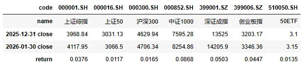1)1月主要股指整体上行,实现“开门红”行情。上证50、沪深300和中证1000指数的月内收益率分别为+1.17%、+1.65% 和 +8.68%。