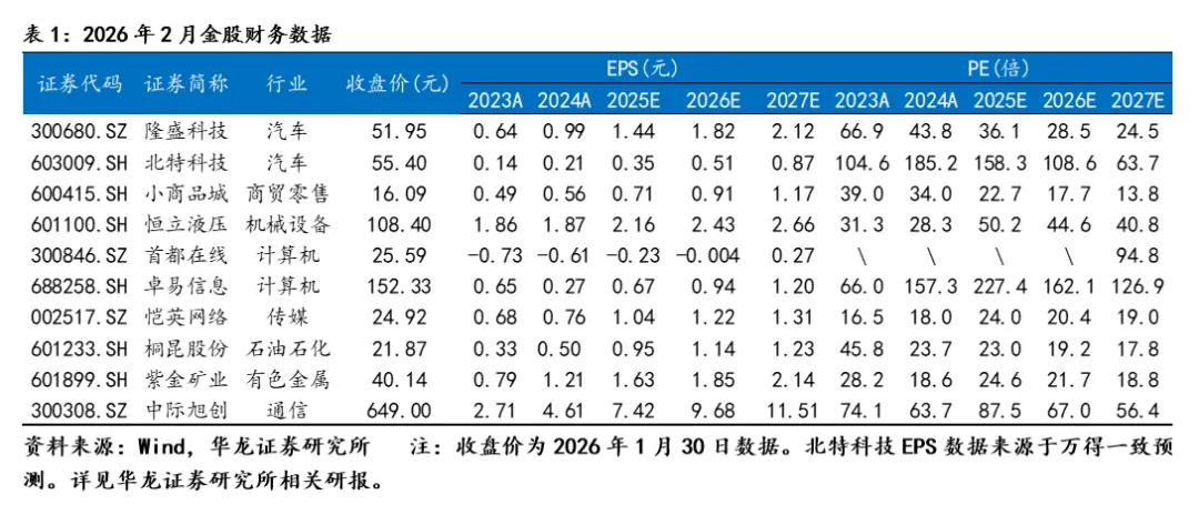 【华龙金股】2026年2月金股报告:市场预期总体稳定