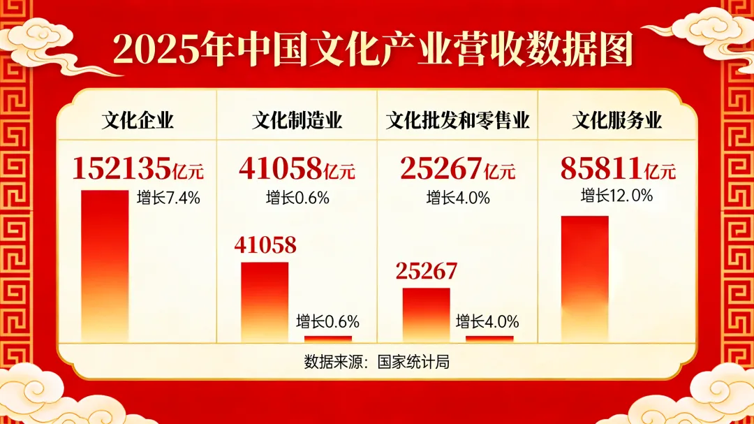 综合2025年文化产业营收状况,未来趋势新业态将持续主导增长,服务业支撑作用进一步强化,这与新业态企业轻资产运营模式的普及、数字化管理效率的提升直接相关。其中数字内容服务、广告服务等板块对利润的带动作用最为明显,成为效益提升的核心支撑。协调发展与核心领域深耕将成为突破方向,文化产业有望在数字融合与结构升级中释放更大潜力。