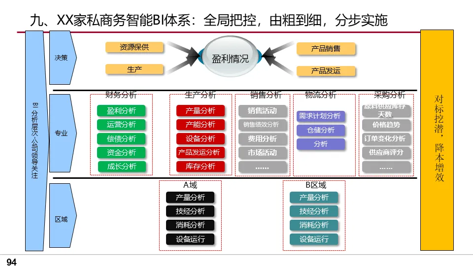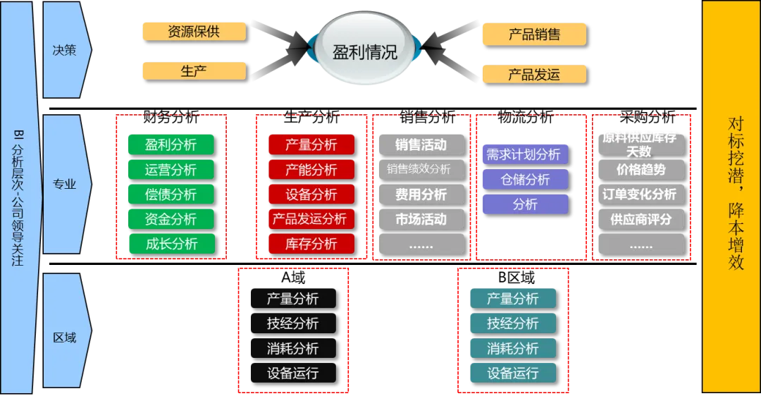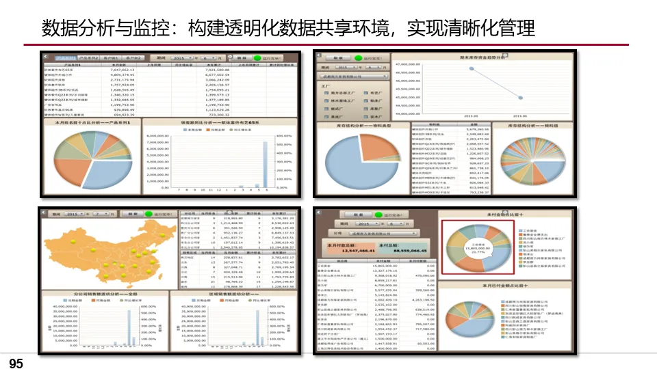 搭建全维度数据分析平台,覆盖销售分析、生产分析、供应链分析、财务分析等核心领域,支持按区域、产品、客户、供应商等多维度钻取查询。通过可视化报表实时呈现销售额、产能利用率、库存周转率、毛利率等关键指标,实现业务异常预警与趋势预测,为集团战略决策、经营管控提供数据支撑。