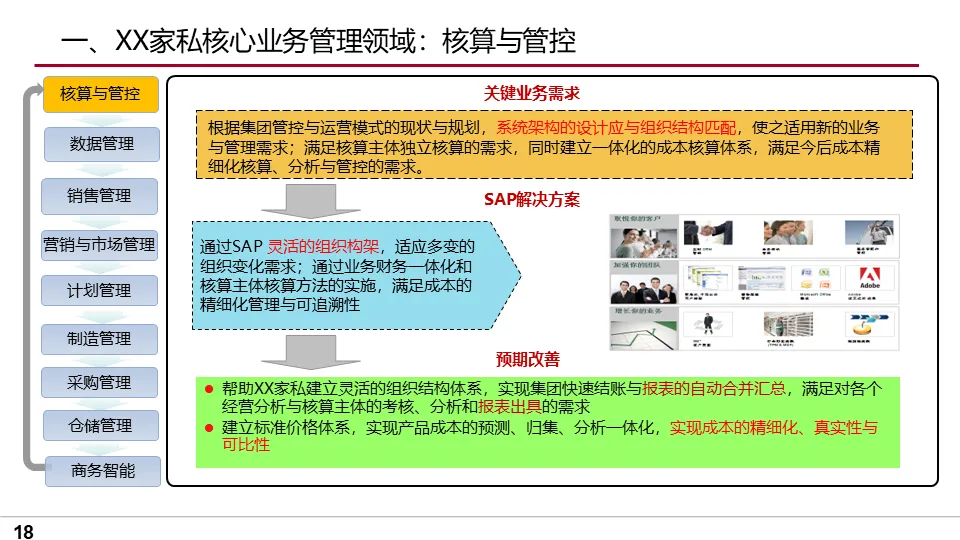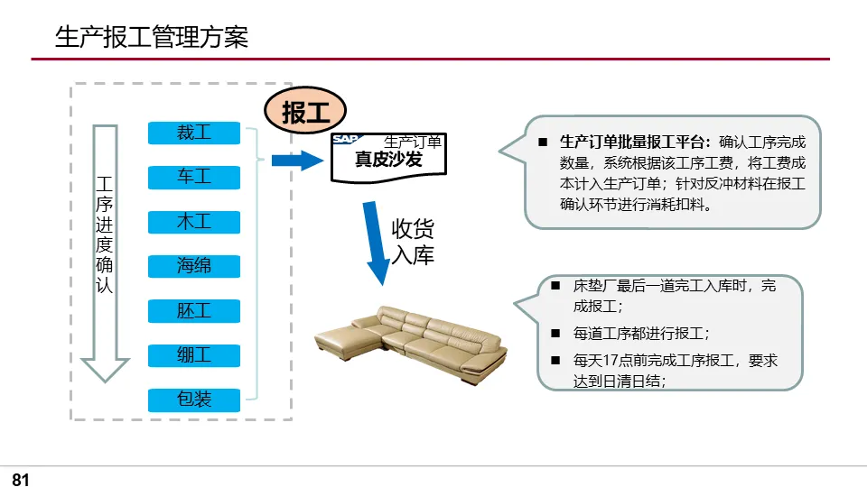 通过 SAP 核心解决方案的落地,家私企业可实现三大核心价值:一是效率提升,订单交付周期缩短、报表生成效率提高、库存周转加快,降低人工操作成本;二是成本优化,通过精细化成本核算与资源优化配置,实现降本增效;三是管控强化,建立标准化流程与数字化管控体系,提升集团化管理能力与市场响应速度,最终实现从 “传统制造” 向 “数字化智能运营” 的转型。