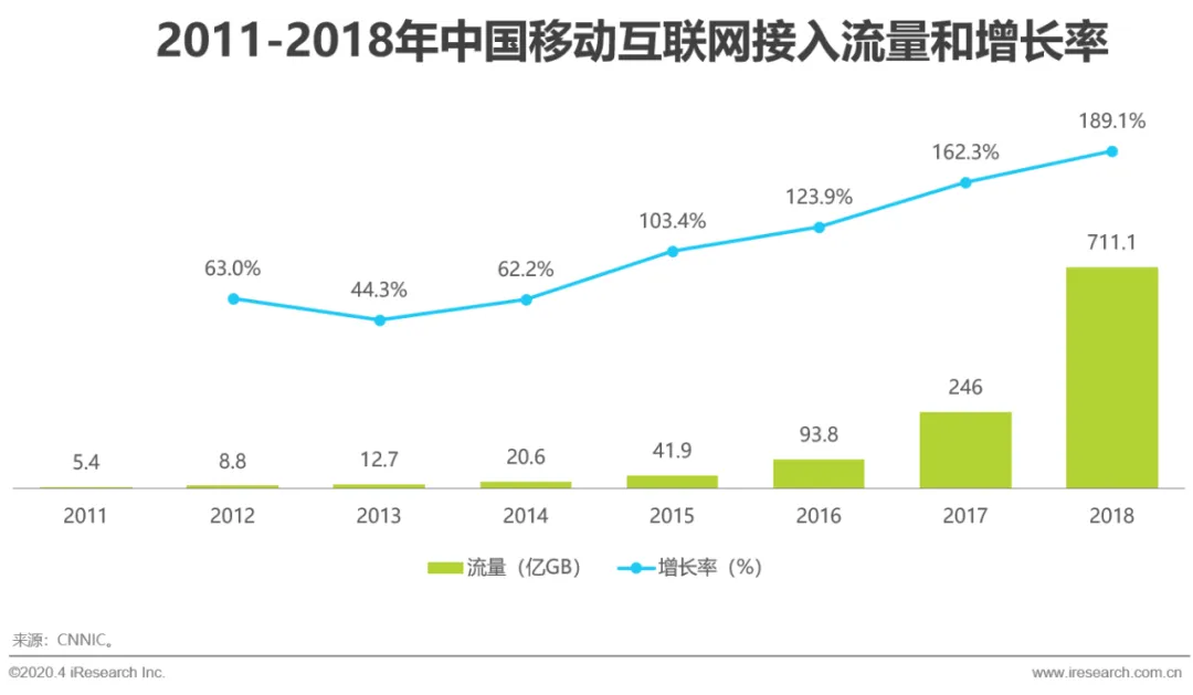 中国网民规模由2011年的约5.1亿人,上升到2018年的约8.3亿人。与此同时,移动互联网的接入流量由2011年的5.4亿GB,增长到2018年的711.1亿GB。这些要素给作为互联网基础设施的IDC带来巨大红利。