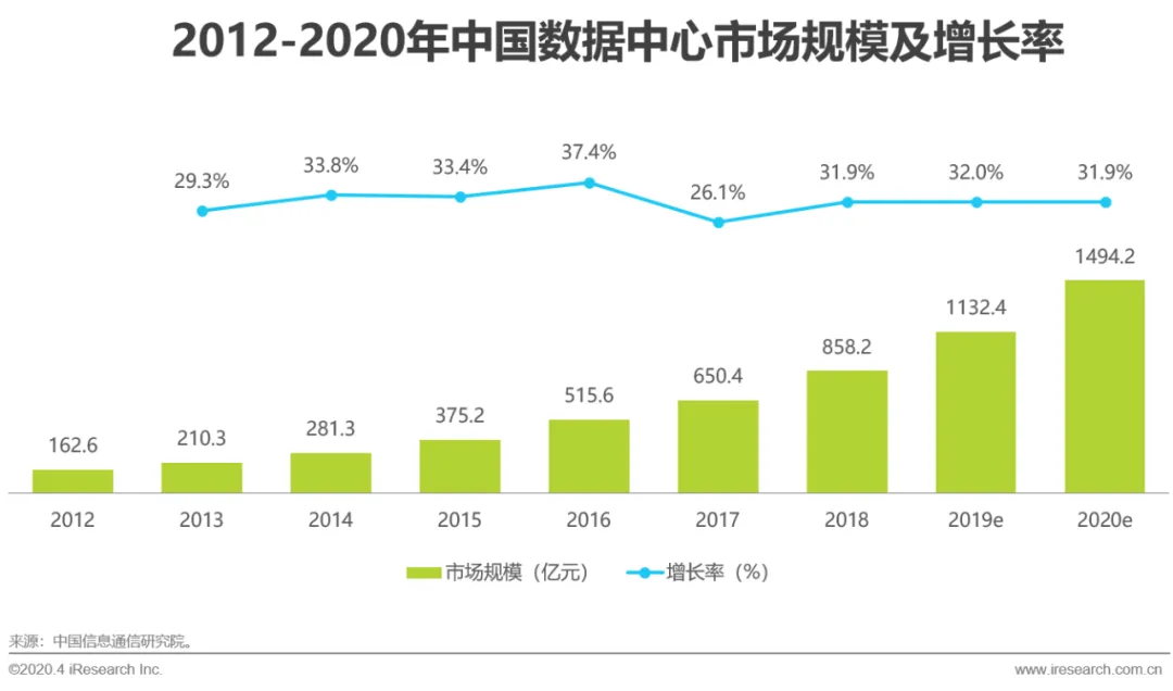 2019年,中国IDC业务的总体营收已达1132.4亿元。未来,受益于5G技术的日益成熟与普及、互联网行业的持续高速发展等,国内IDC行业仍将保持30%以上的年复合增长率。