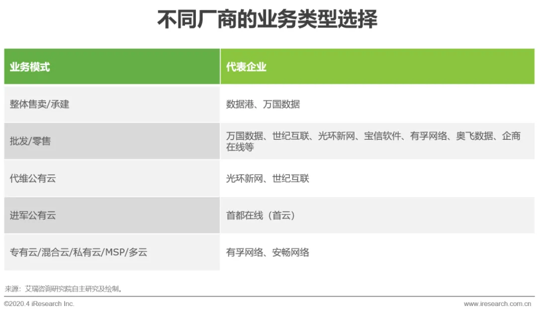 横向整合之外,纵向延伸是更为明显的趋势。大量的客户,尤其是金融领域等高敏感客户的需求是公有云无法直接满足的,私有云、专有云、混合云和多云并用等形式广泛存在。数据中心厂商倚靠自己的IDC基础资源、良好的客户关系、运维能力和线下交付能力,为客户打造专有云、混合云或云管平台,向产业上游扩展,将成为新的增长点。而头部的服务商,直接承建大客户的数据中心,直接采用类似于地产的商业模式,是向产业上游延伸的路径。