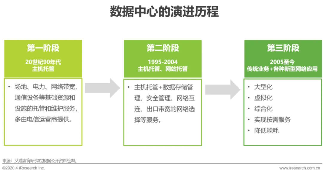 早期的数据中心,比较简单。随着数据量的增加、数据业务的日趋复杂、生活和生产对互联网的依赖程度越来越高,耗电量的不断增长,数据中心的标准也越来越高,主要体现在标准性、稳定性、节能性和高密度性等方面。