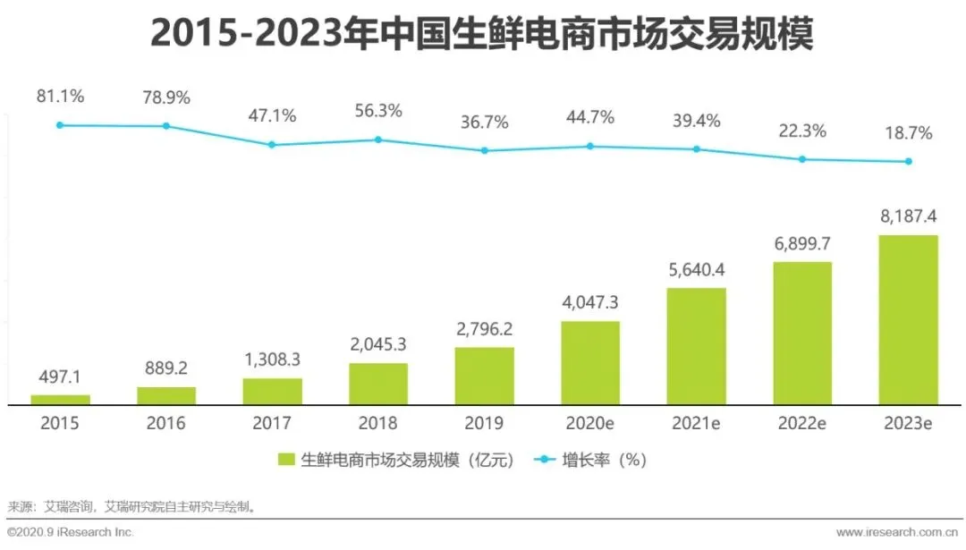 中国生鲜电商市场发展迅速,2019年生鲜电商市场交易规模达到2796亿元。