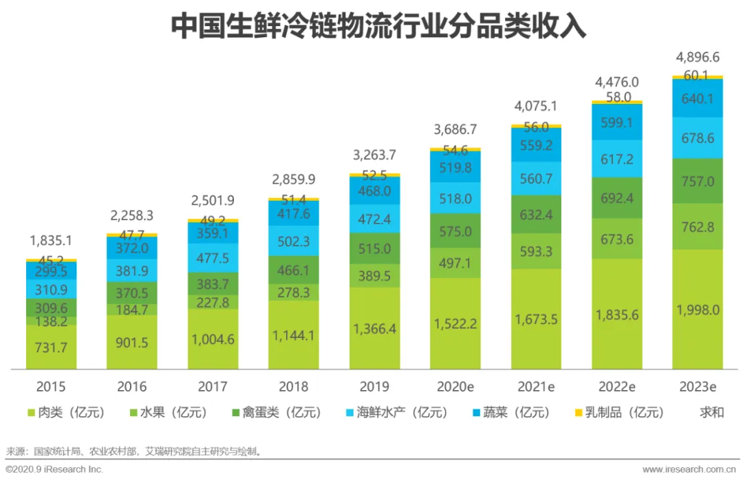冷链物流是生鲜供应链中游基础设施,2019年市场规模达3264亿元。商流变革与消费升级等因素将从供给与需求两端持续驱动行业发展,疫情时期更是成为生鲜行业关注的核心。