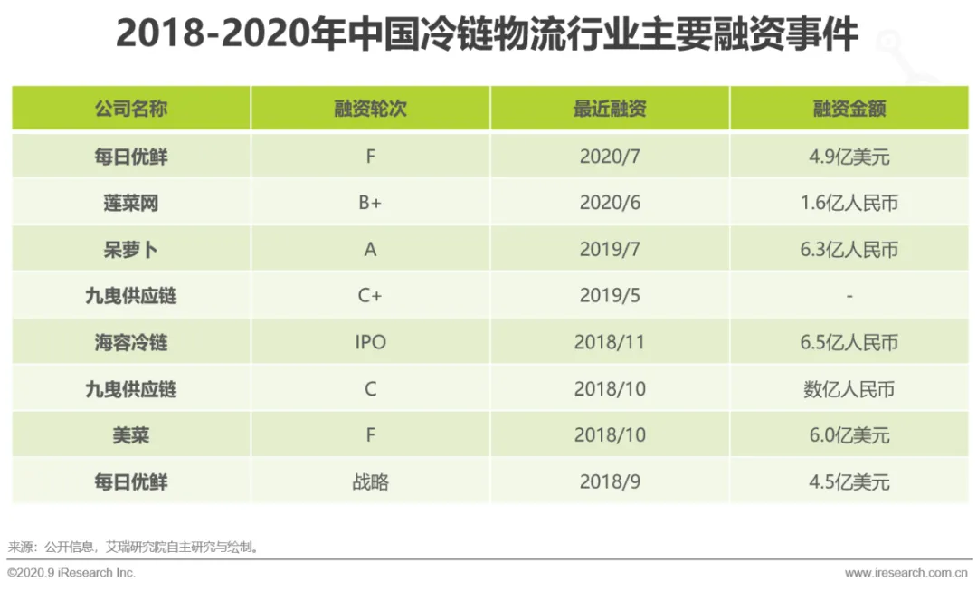 产业中上下游整合,融资收购事件频起:由于冷链物流网前期投资较大,经资本培育,帮助企业提高投入,加快技术进步,建设冷链网络,有效提升资源配置效率,降低物流成本。通过产业中下游并购重组及一系列融资事件为冷链物流行业带来更多资本注入及资源拓展,培育更多如聚盟、九曳等一众成熟冷链物流企业,帮助行业加速增长。