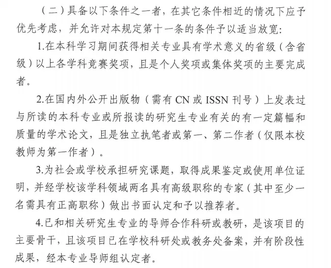 具备以下条件之一者,在其它条件相近的情况下应予优先考虑,并允许对本规定第十一条(以上)的条件予以适当放宽: