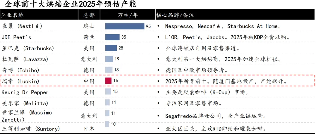 下游烘焙环节,前十大企业(包括雀巢、星巴克、瑞幸等)占据全球35%的市场份额,产业链整合能力成为竞争核心。