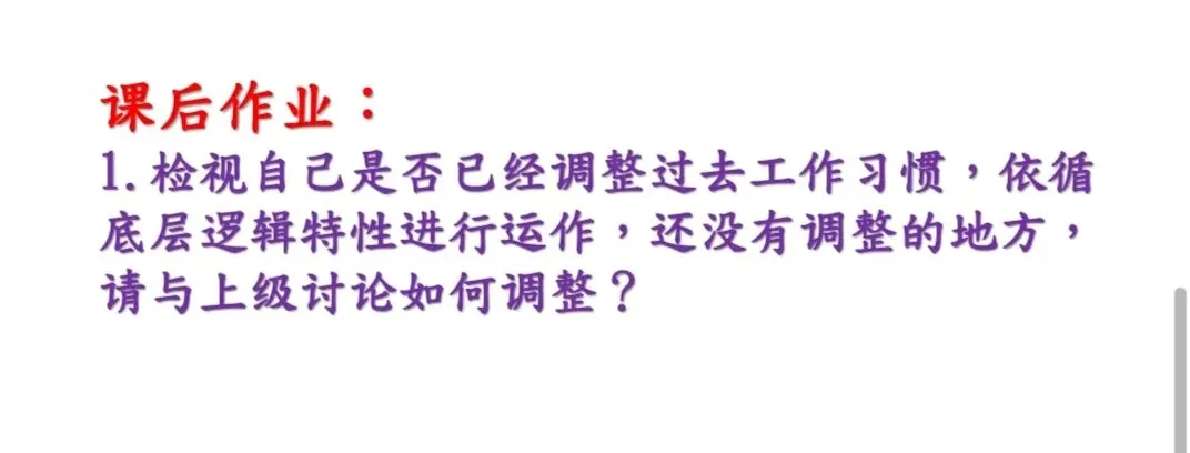 而运作半年以上的核心伙伴,要边听边检视:哪些动作没做到位?这样才能课后快速调整工作模式,复制给团队伙伴按底层逻辑操作。