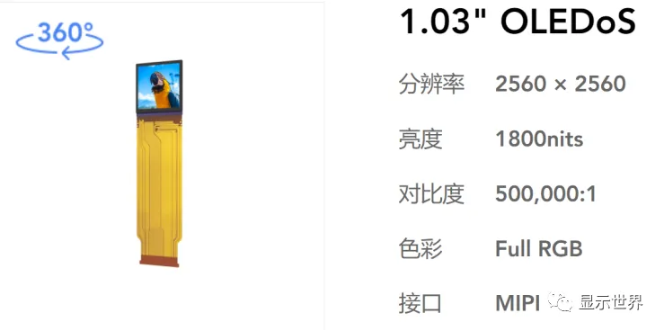 美国Kopin公司2017年首次引入OLED微型显示器,并于2018年开始提供2K×2K分辨率样品。