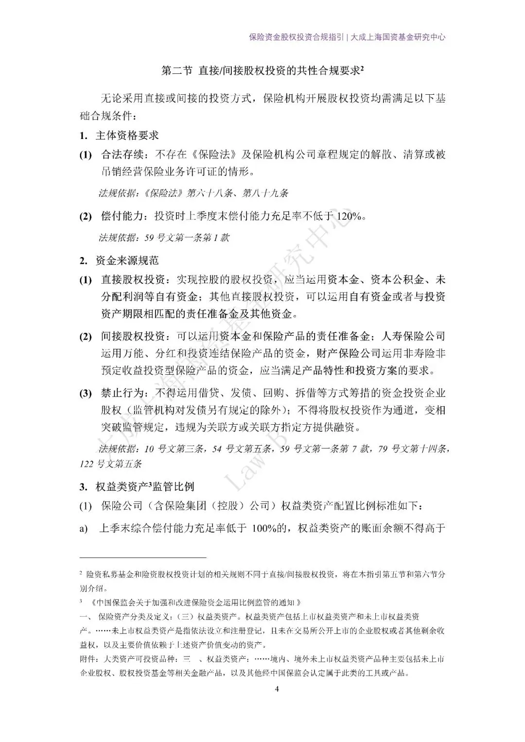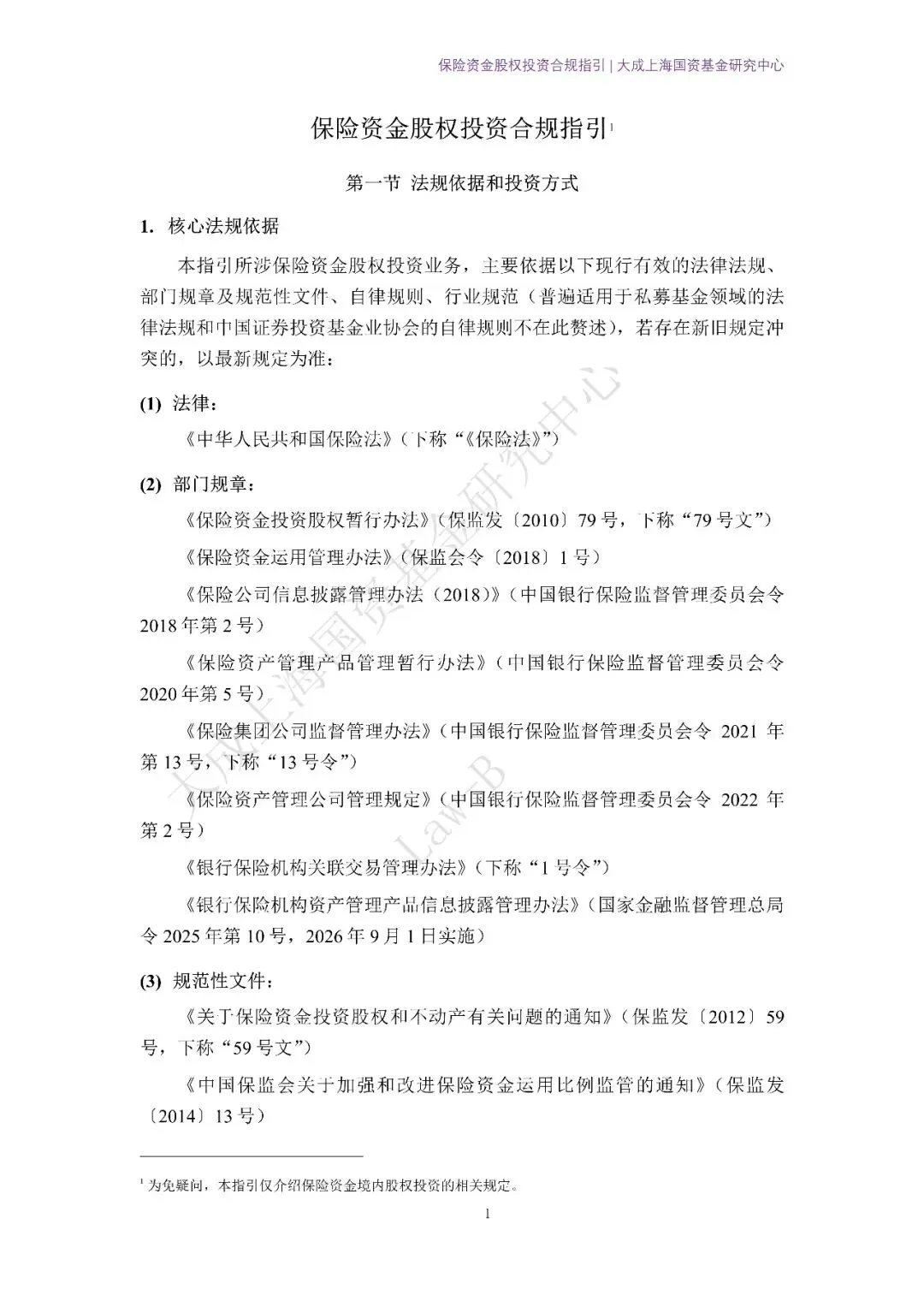 本指引所涉保险资金股权投资业务,主要依据以下现行有效的法律法规、