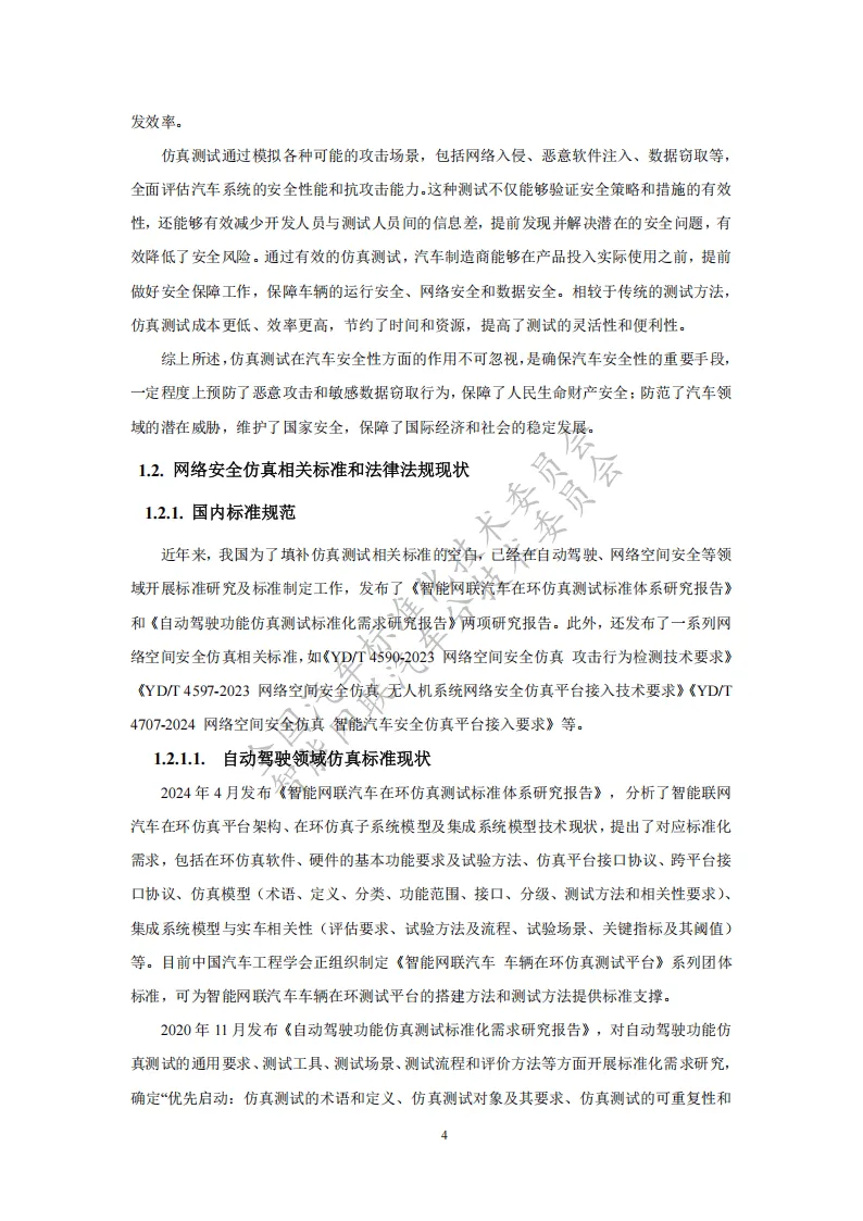 报告由全国汽车标准化技术委员会智能网联汽车分技术委员会主导,联合整车企业、供应商及检测机构等多方编制,聚焦智能网联汽车网络安全需求,构建全生命周期仿真测试标准体系,为行业解决传统测试痛点提供系统性方案。