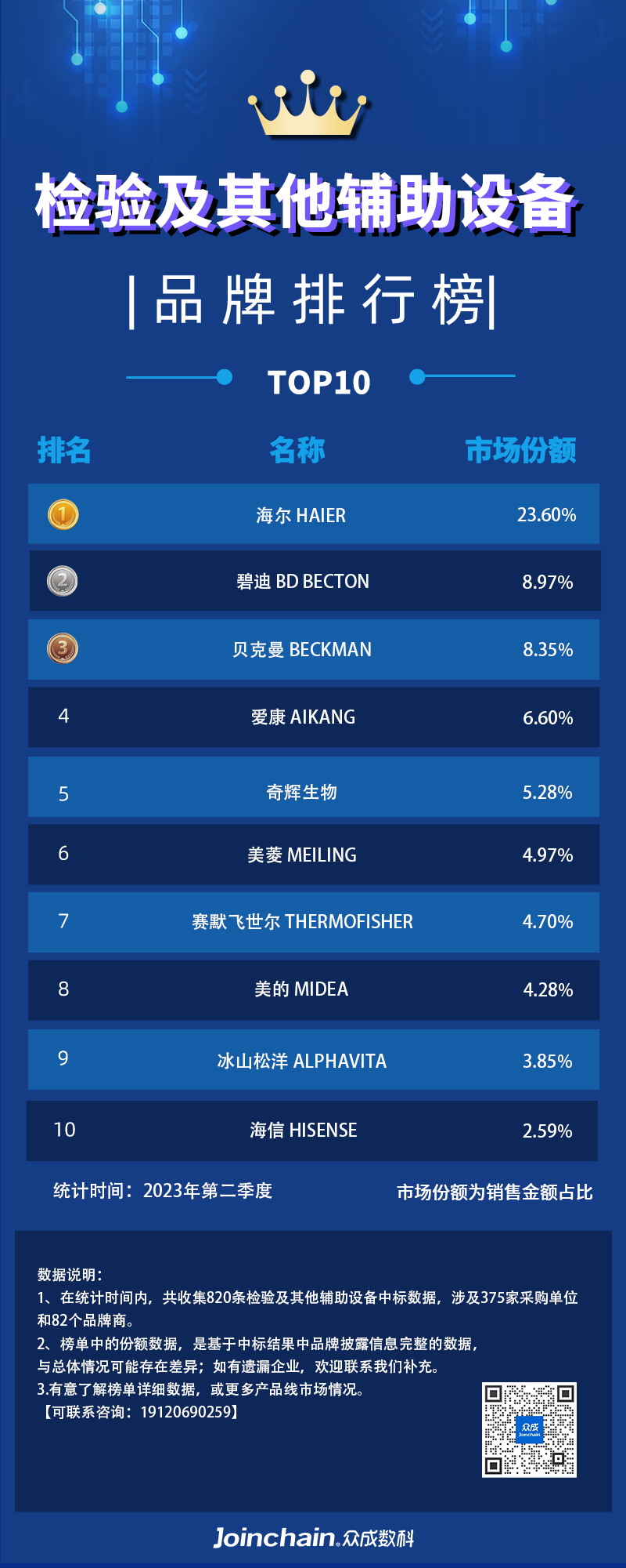 图1:2023年第二季度检验及其他辅助设备品牌排行榜