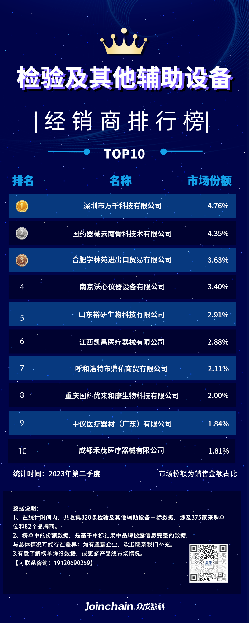 图3:2023年第二季度检验及其他辅助设备经销商排行榜