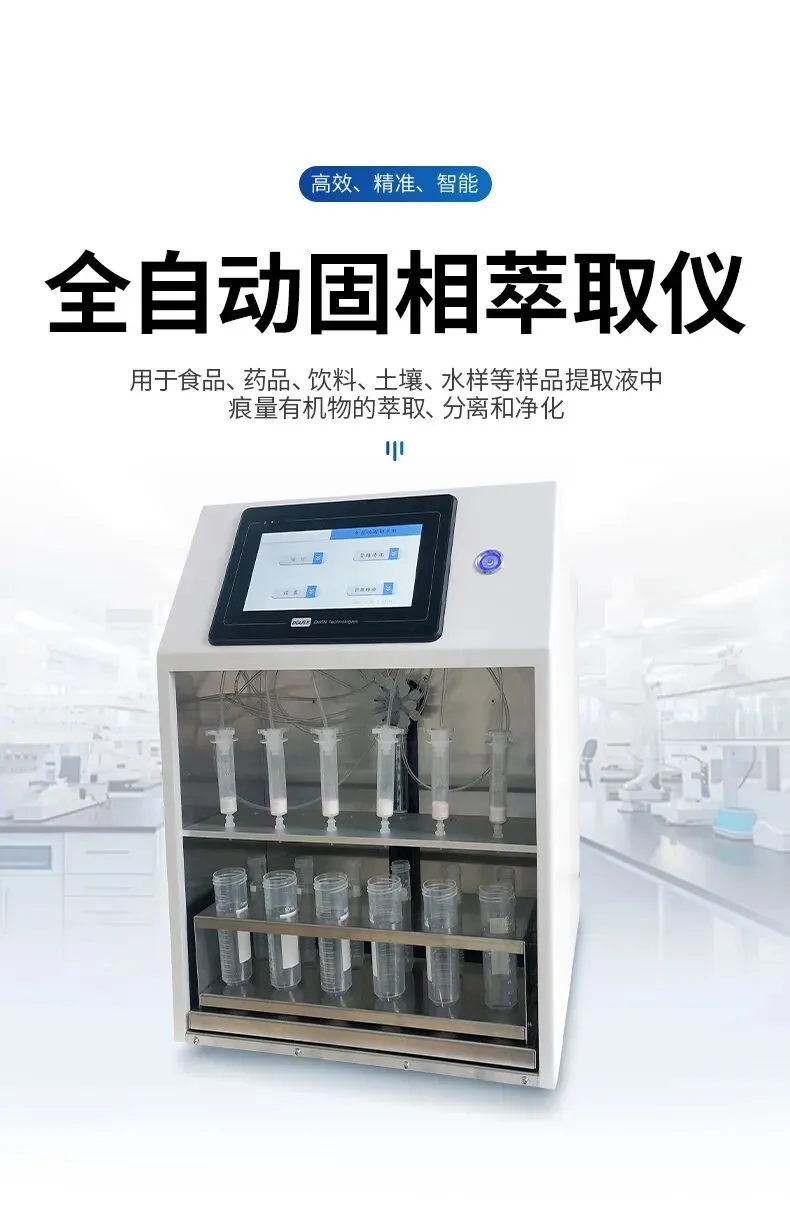 4.6 科研领域:该全自动固相萃取仪适用于高校、科研院所的实验室,可作为样品前处理核心设备,配合气相色谱仪等检测设备,开展环境科学、食品科学、药学、农业科学等领域的科研实验,为科研项目提供精准、高效的前处理服务。