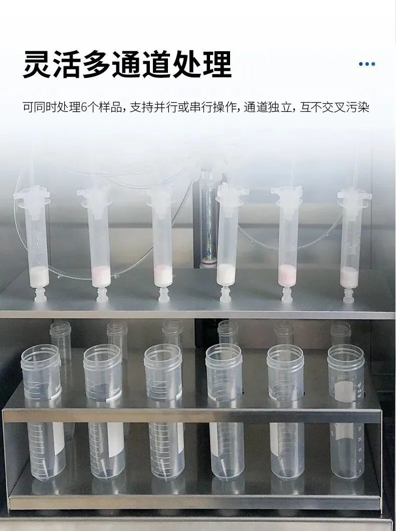 3.4 SPE柱体积:支持1mL、3mL、6mL、12mL四种规格,兼容不同厂家生产的萃取柱,可根据不同样品的检测需求灵活选择,提升设备适配性。