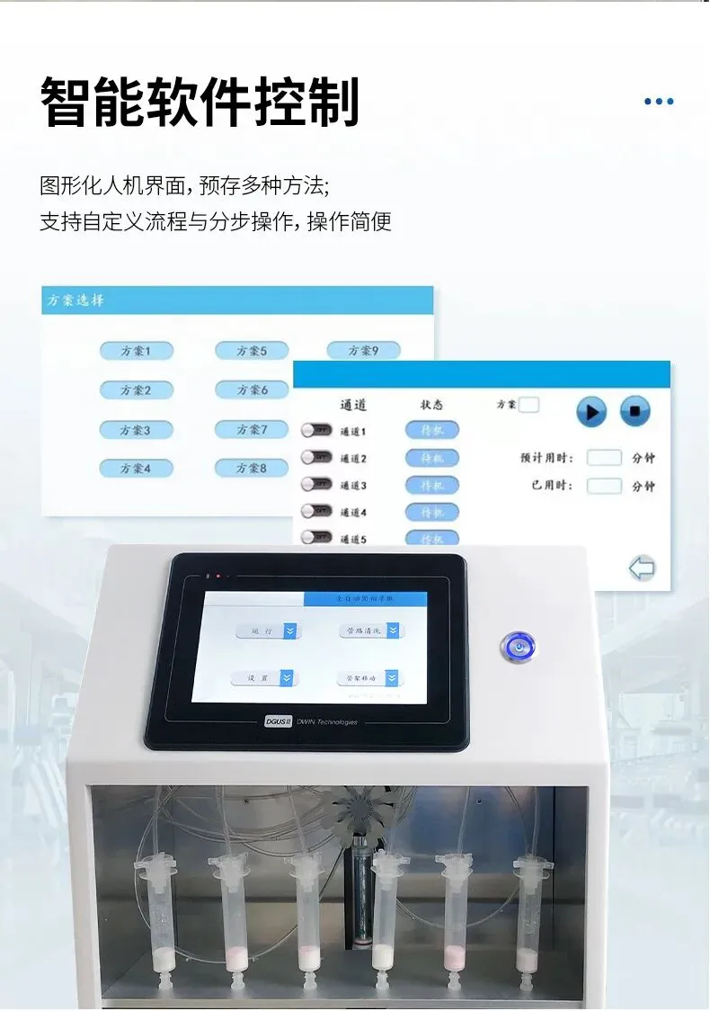 3.6 流量范围:1-120mL,可满足不同体积样品的萃取处理需求,适配大体积土壤提取液和小体积食品、药品样品的处理。