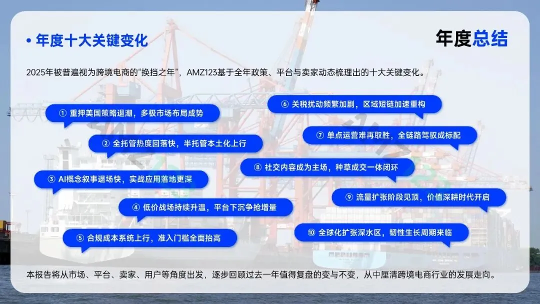 政策端,国内税务报送与多国监管新规落地,推动行业加速合规化;市场端,美国因政策不确定性增速放缓,欧洲作为“第二选择”乘势崛起;平台端,TemuTikTokShop等继续在海外掀起波涛,全面进入“多维混战”的新时代。