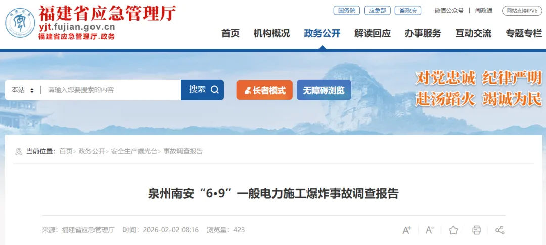 2月2日,福建省应急管理厅发布《泉州南安“6·9”一般电力施工爆炸事故调查报告》。
