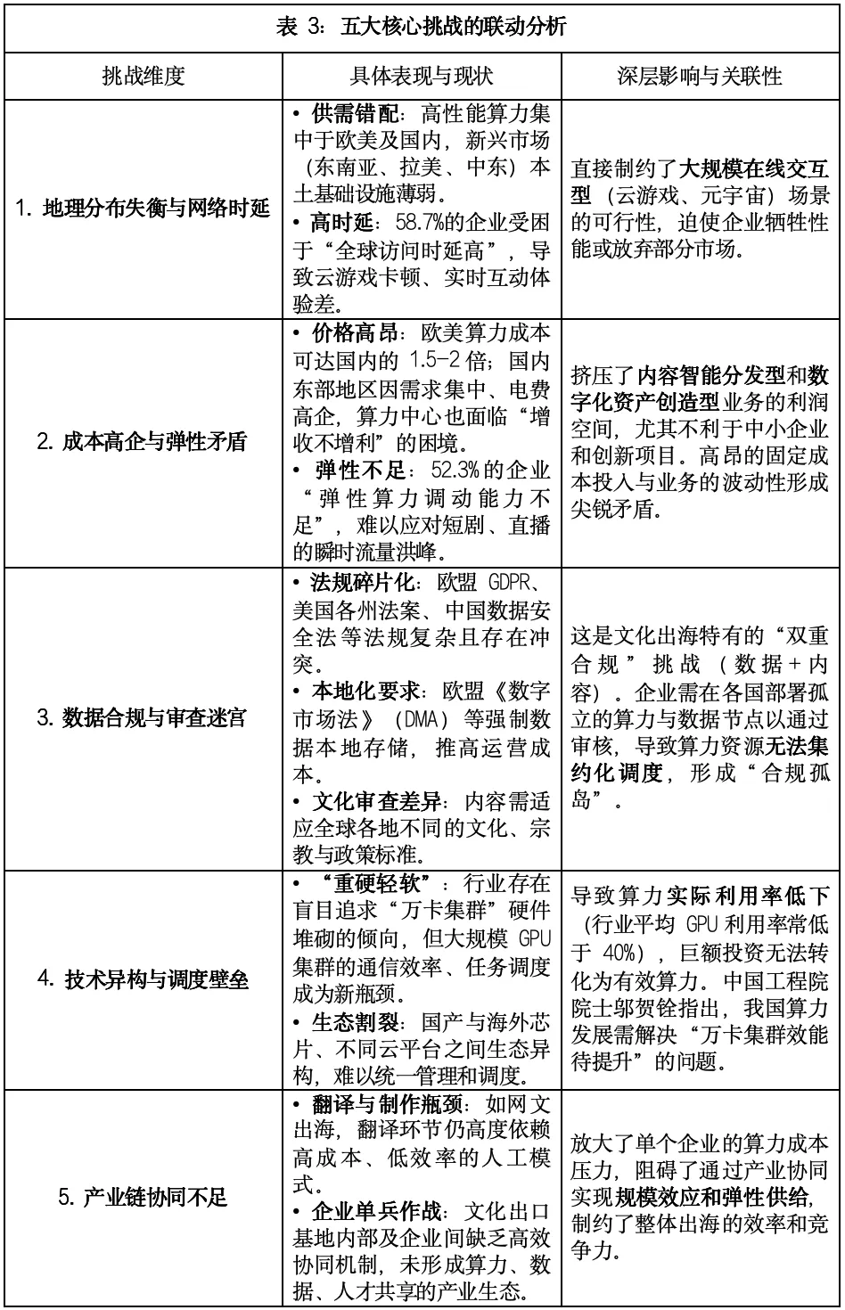 供给的集中化与需求的全球化之间的矛盾:“东数西算”旨在优化国内布局,但文化出海要求算力紧随全球用户。西部算力节点与海外市场之间的网络延迟,使其难以直接支撑海外实时业务,出现了“远水解不了近渴”的现象。