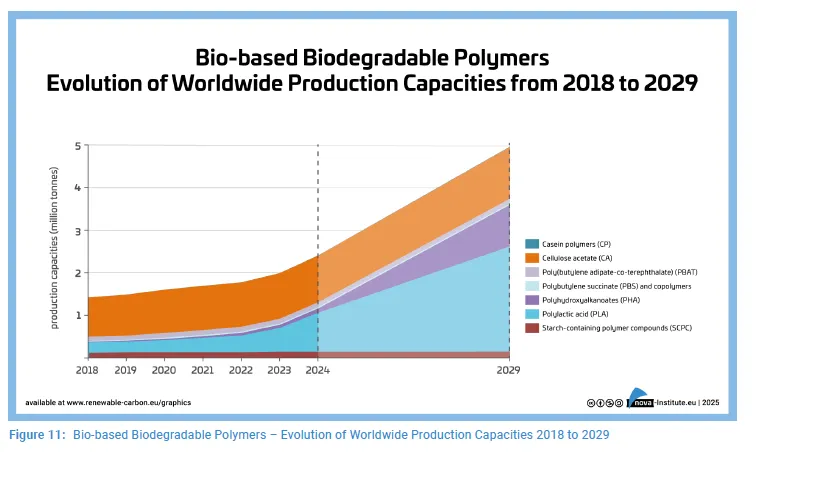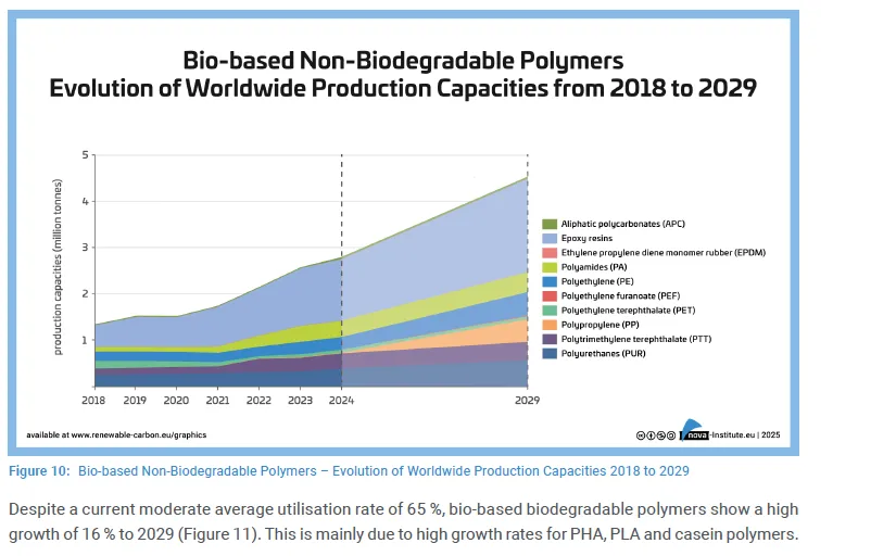资料来源: nova‑Institut《Bio‑based Building Blocks and Polymers – Global Capacities, Production and Trends 2024–2029》
