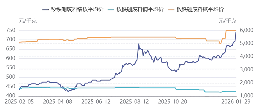 上周废料市场呈现显著变化,价格出现明显上涨,这一态势主要源于氧化镨钕价格的快速攀升。当前,氧化镨钕现货供应持续处于紧缺状态,与此同时,下游磁材企业积极进行备货采购,双重因素推动下,氧化物市场价格不断上调。受此影响,废料持货商普遍看涨,低价出货的意愿明显降低。回收企业面对这一情况,不得不提高废料采购报价。不过,回收企业对于追高采购较为谨慎,所以废料价格的涨幅相对有限。综合来看,在氧化镨钕价格拉涨的带动下,废料市场整体看涨情绪浓厚,回收企业也相应上调了采购报价。预计短期内,鉴于氧化镨钕供应紧缺的状况仍将持续,废料价格有望维持在高位运行。