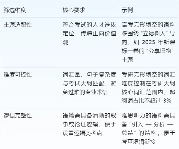 所有考试的语料筛选均遵循三大核心标准: