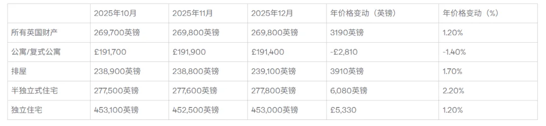 英国平均房价目前为269,800英镑,过去一年上涨1.2%,较去年增加3,190英镑,虽低于2024年1.9%的涨幅,但在市场调整期仍实现稳步增长,彰显市场韧性。