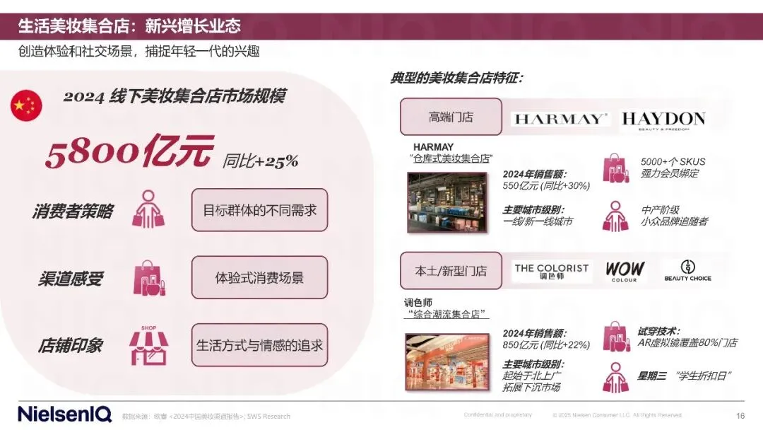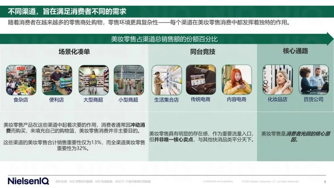 ⚫ 渠道分化:线下渠道分化明显,化妆品店承载精致需求,集合店创造体验场景,会员店主打高性价比。