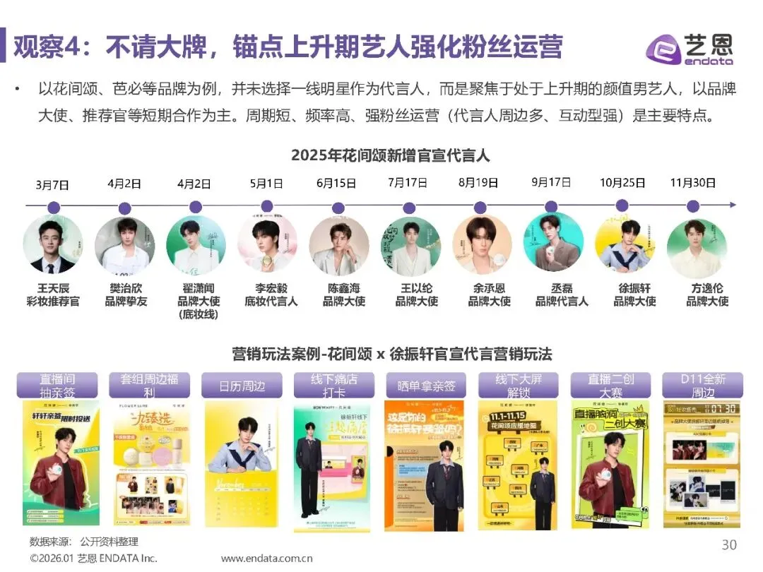 ? 行业趋势:明星代言市场持续扩张,代言合作趋向精细化,娱乐影视明星仍是首选,喜剧圈层代言人增长最快,中腰部艺人与上升期艺人饱受青睐。