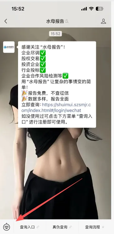 1.打开微信,搜索公众号「水母报告」,关注后进入公众号首页;