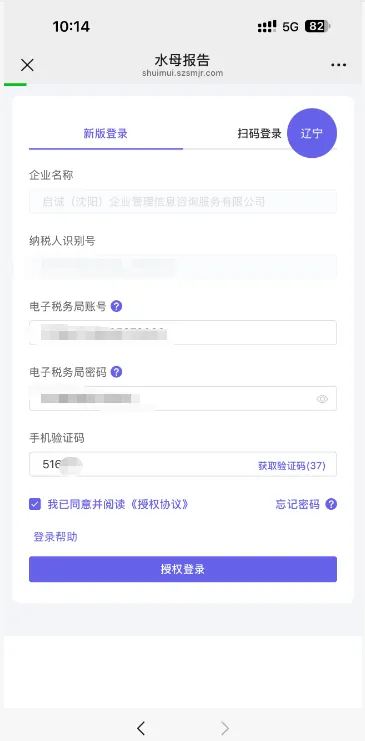 4.按提示填写企业信息并完成授权(需用到电子税务局账号密码,忘记密码可直接在页面修改),提交后点击「授权登录」;