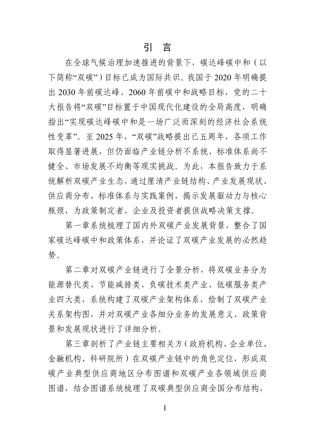 中国双碳产业已进入规模化、市场化快速发展阶段,成为推动能源安全、产业升级与新质生产力发展的战略引擎。报告将产业全景梳理为四大板块: