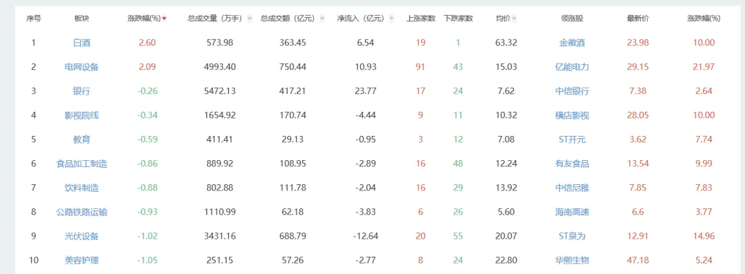 电网设备 酿酒行业 银行