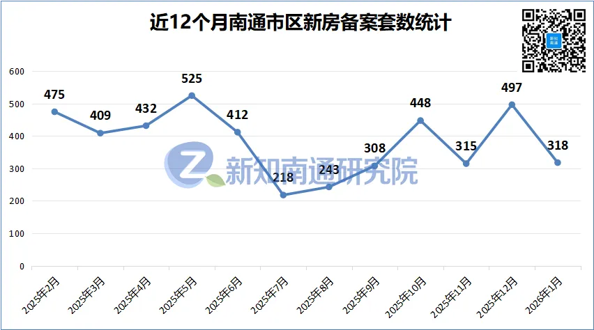 成交端同样承压。截至1月末,市区主力在售新房项目约54个(已剔除尾盘及长期滞销项目),当月累计备案318套,环比下降约36%,同比下降约16%,市场整体购买意愿仍趋保守。