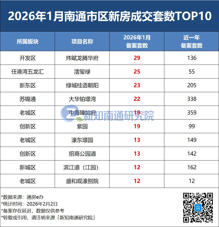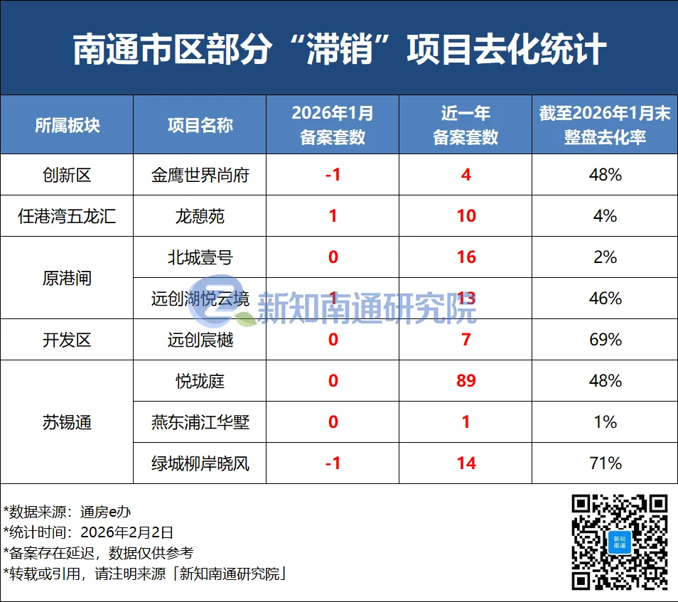2026年开局,南通市区新房市场延续深度调整态势。供需两端同比双双下滑,库存去化周期进一步延长,板块分化格局持续凸显,产品结构明确向低容积率改善型转向,市场仍处于筑底阶段,需求释放依赖于核心区优质项目的带动。