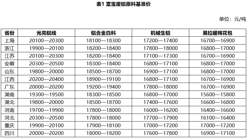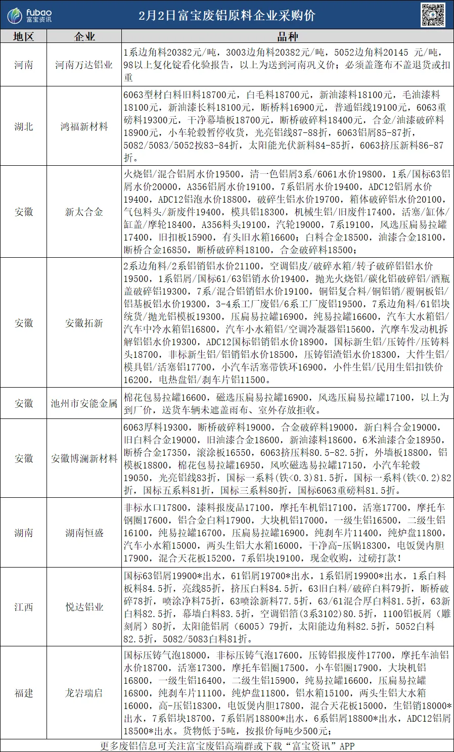 今各地区废铝报价大跌600-700元/吨不等,华东地区光亮铝线报19500-20500元/吨,铝合金白料17800-18700元/吨,市场报价混乱,有价无市,少量成交;春节假期将近,本周部分货场将进入收尾工作,部分看涨节后行情,适量囤货。短期宏观预期偏弱,预计明日废铝价格下跌。