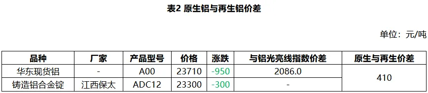 再生铝合金锭生产成本由原料费用+设备折旧费用+人工费+燃气费+铝灰处理费+炉耗等综合测算;废铝原料按破碎生铝(出水95%)进行计算;最新国内再生铝合金平均加工炉耗设定为1.5%(原值2%);近日因地区税返政策波动,成本端税率有所调整。
