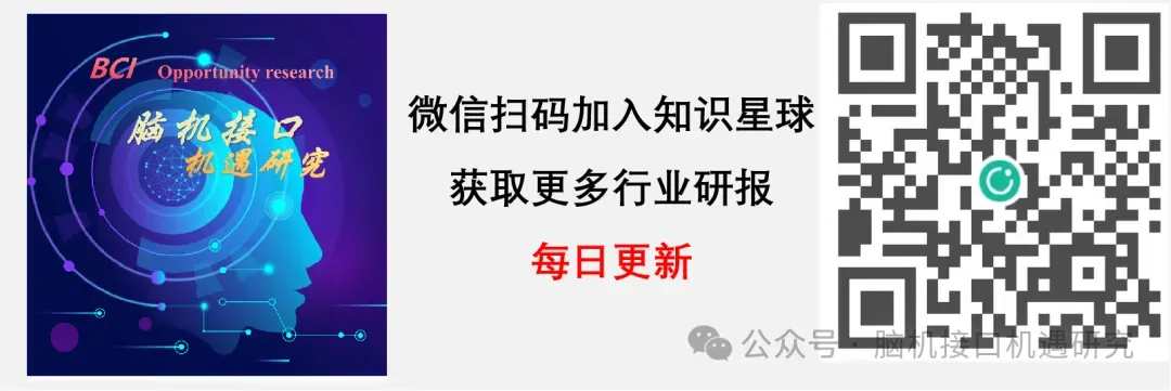 温馨提示:扫描下方二维码,下载、加入我的知识星球,获取完整报告,同时可免费下载300+脑机接口行业高清报告
