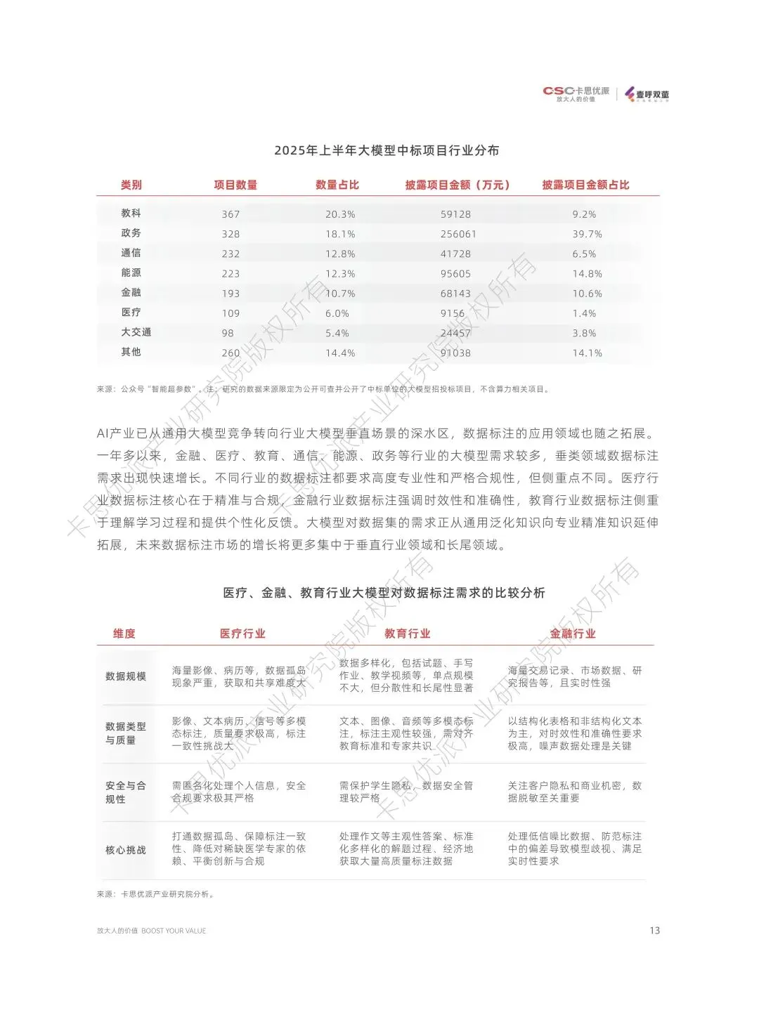 医疗、教育、金融等领域的行业大模型,急需专业领域的标注数据支撑;具身智能、跨境应用等场景,还催生了多模态交互数据、小语种数据等个性化需求。通用标注市场趋于饱和,垂直领域与长尾市场成为增长核心。
