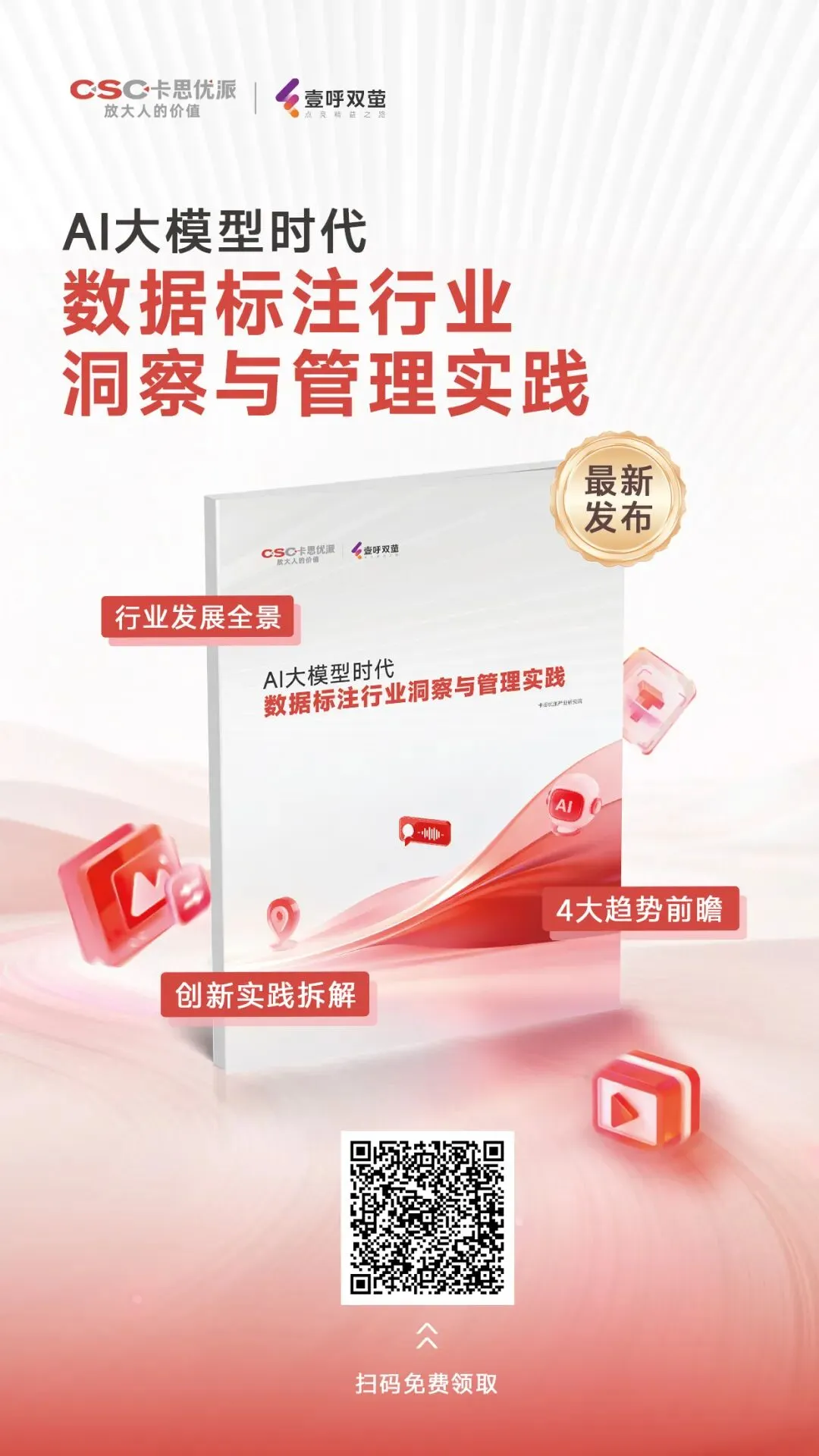 基于此,卡思优派产业研究院依托集团旗下壹呼双萤的长期数据服务实践经验,历时数月深入调研,重磅推出《AI大模型时代数据标注行业洞察与管理实践》报告。
