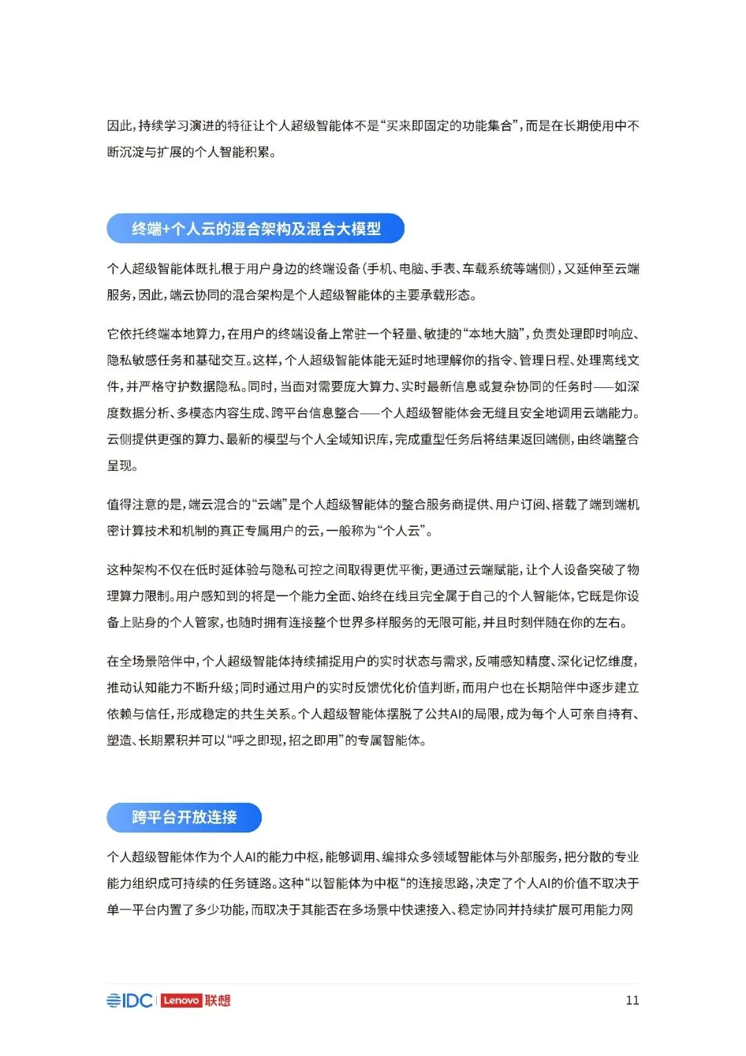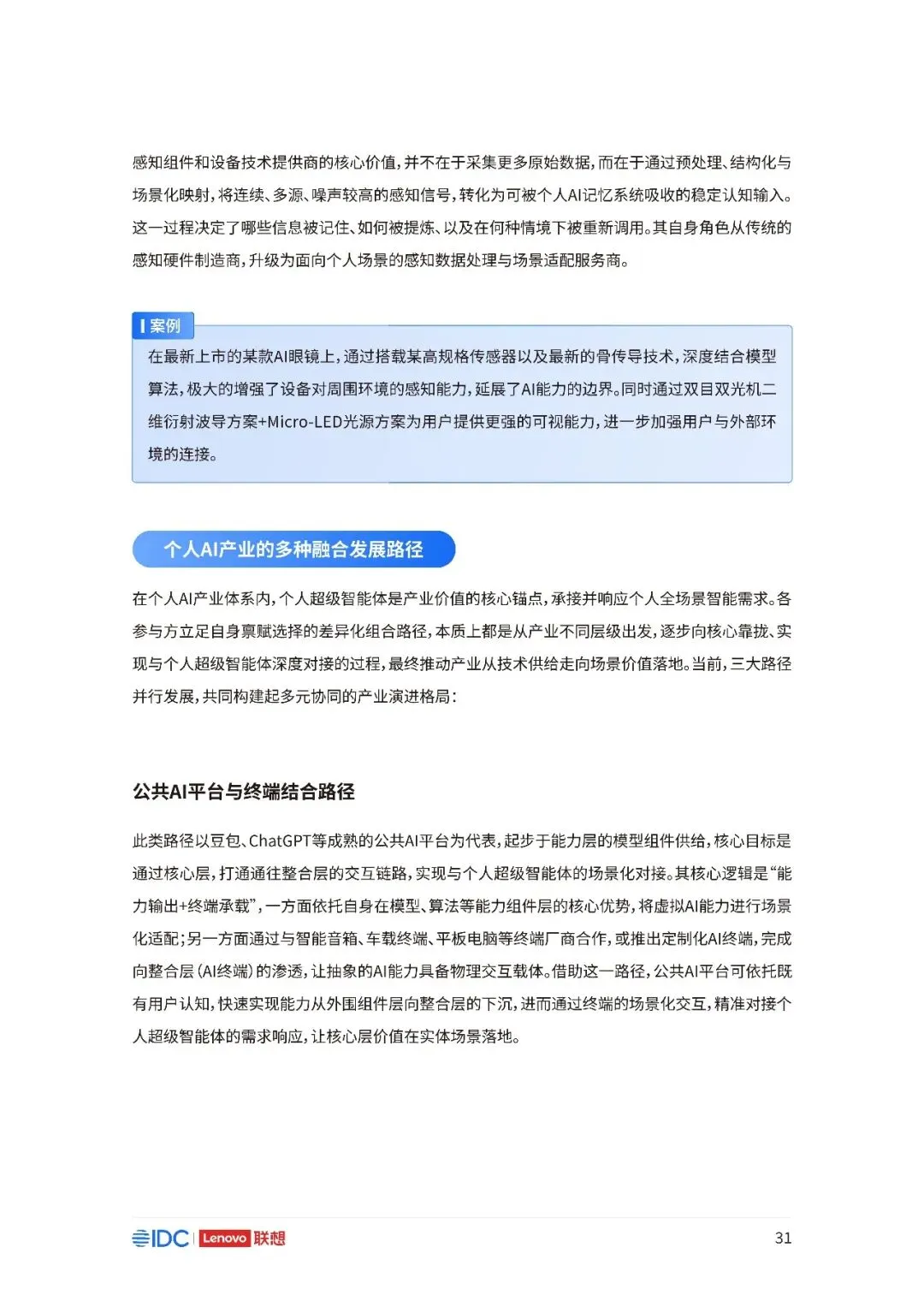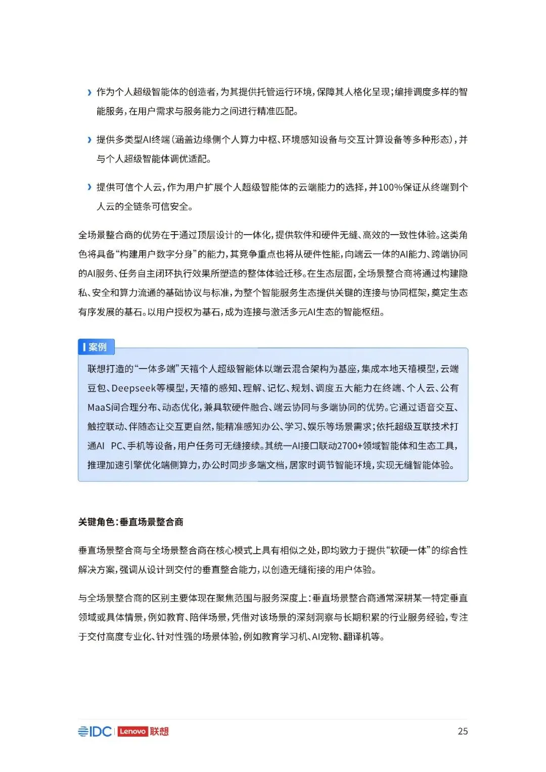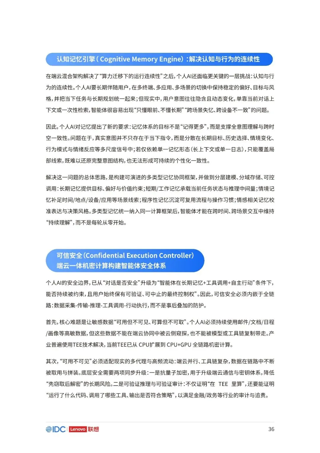 联想与IDC合作发布《个人AI产业定义、产业架构与发展趋势白皮书》。白皮书指出,越来越多的公共AI参与者,也开始从以公共AI为主,向个人AI方向进行迁移,“业界已形成共识,个人AI是未来创新和普惠的关键方向。”
