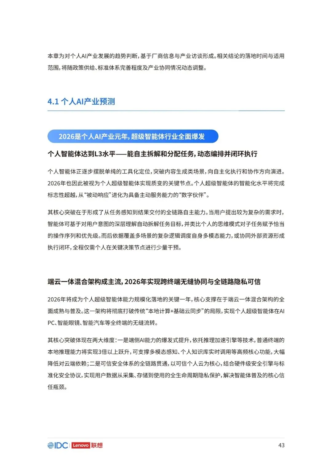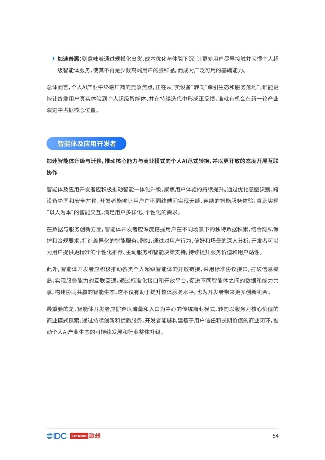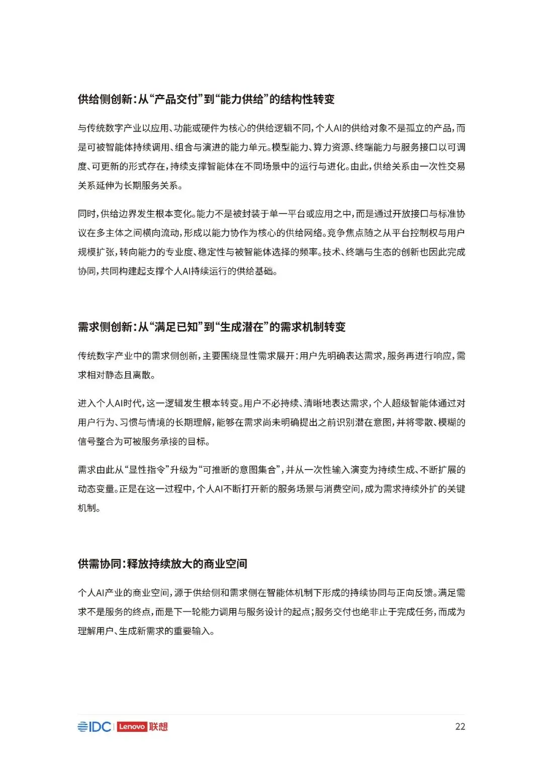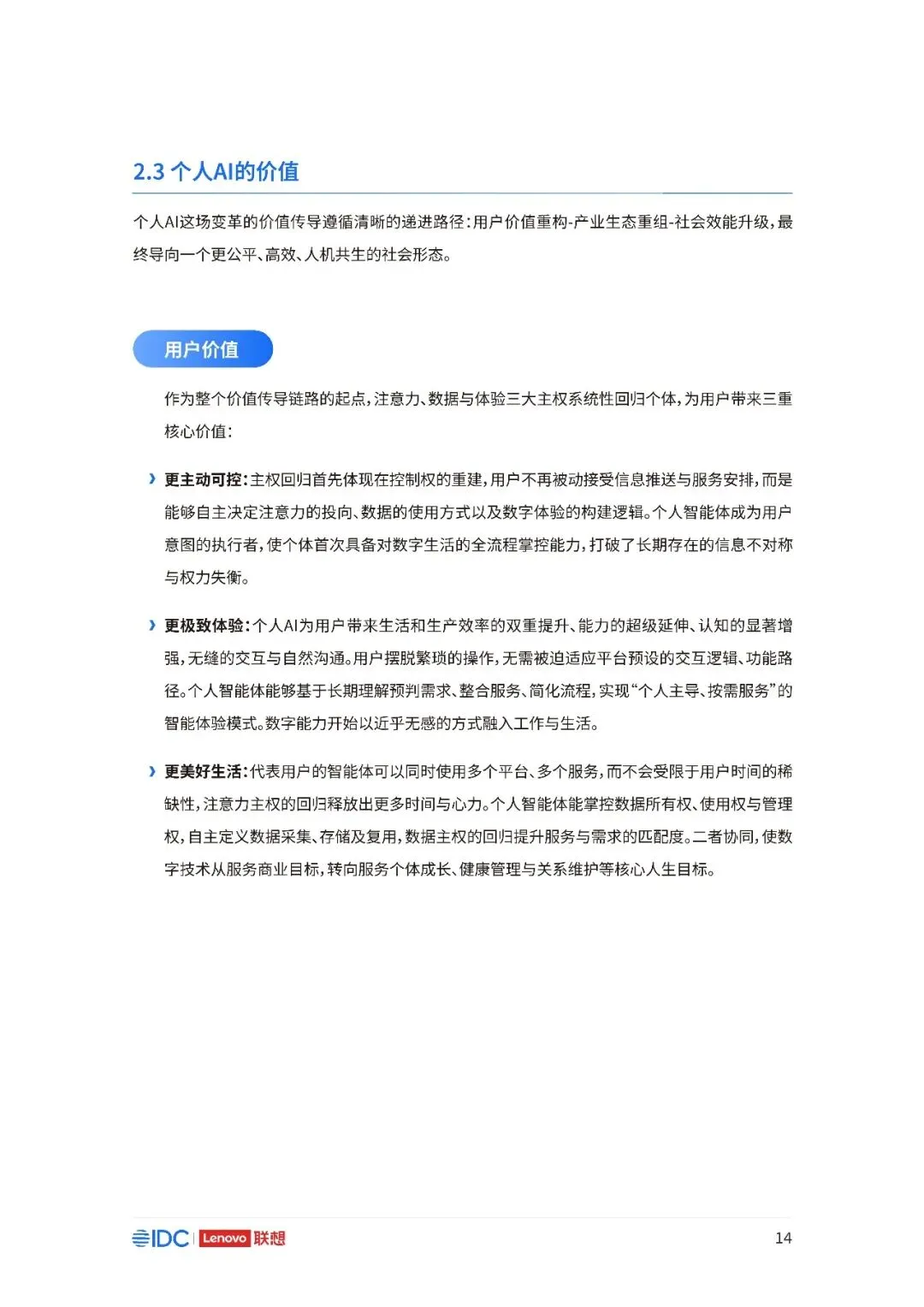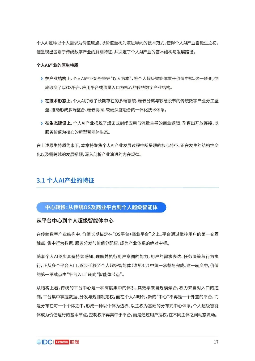 联想与IDC合作发布《个人AI产业定义、产业架构与发展趋势白皮书》。白皮书指出,越来越多的公共AI参与者,也开始从以公共AI为主,向个人AI方向进行迁移,“业界已形成共识,个人AI是未来创新和普惠的关键方向。”