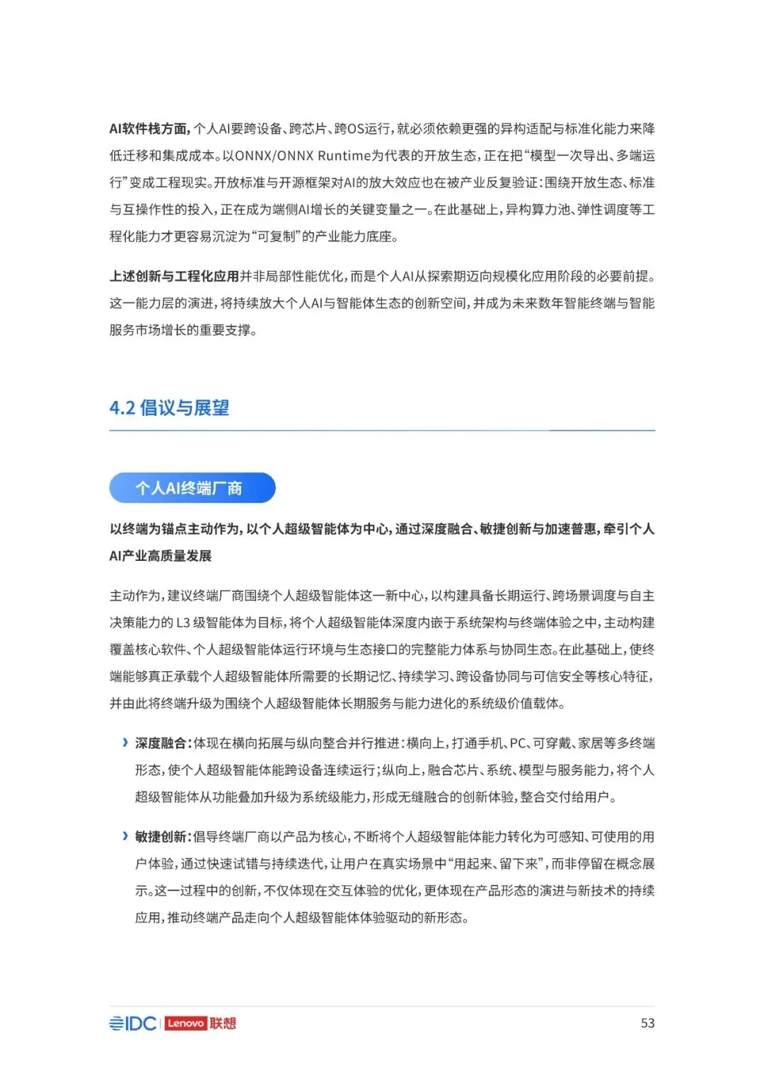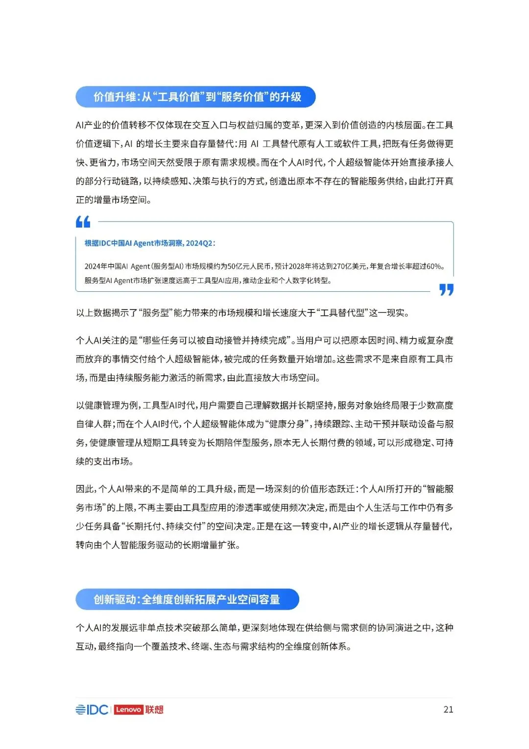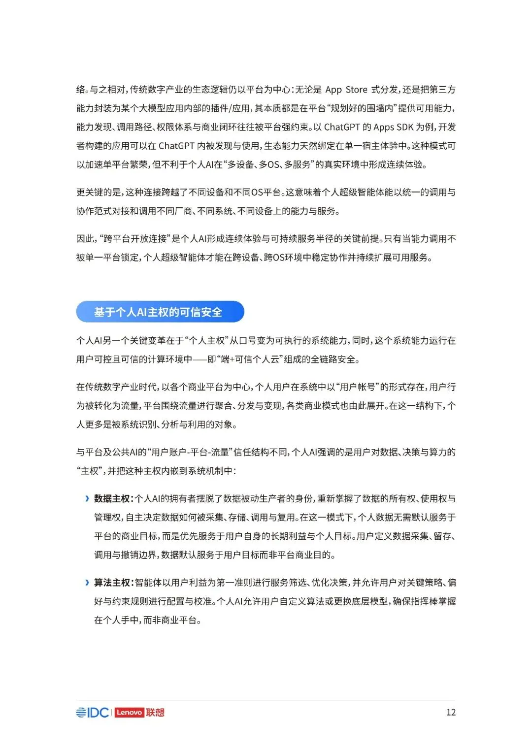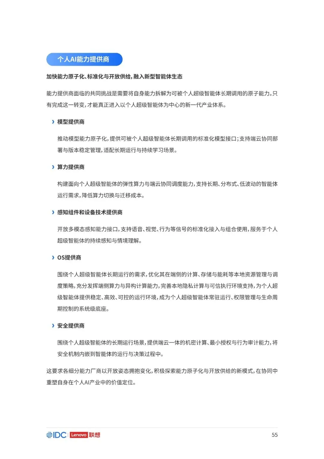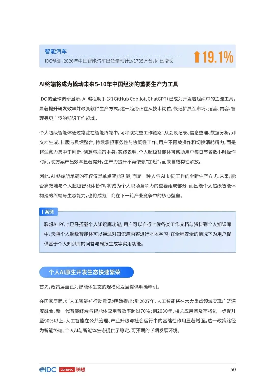 联想与IDC合作发布《个人AI产业定义、产业架构与发展趋势白皮书》。白皮书指出,越来越多的公共AI参与者,也开始从以公共AI为主,向个人AI方向进行迁移,“业界已形成共识,个人AI是未来创新和普惠的关键方向。”