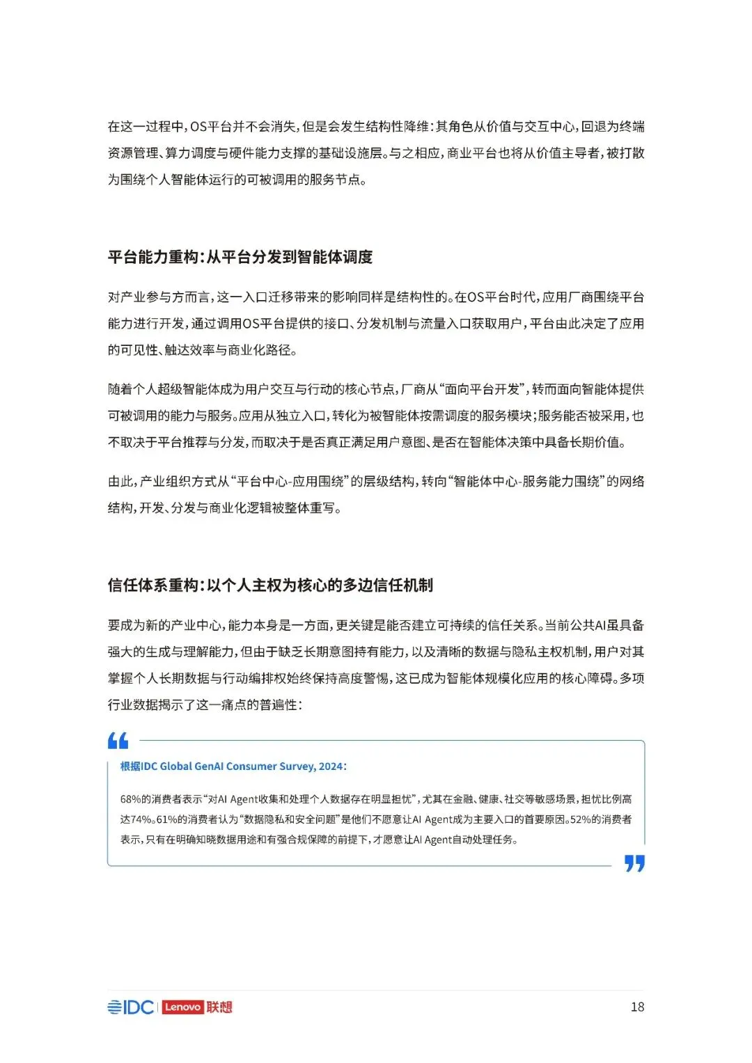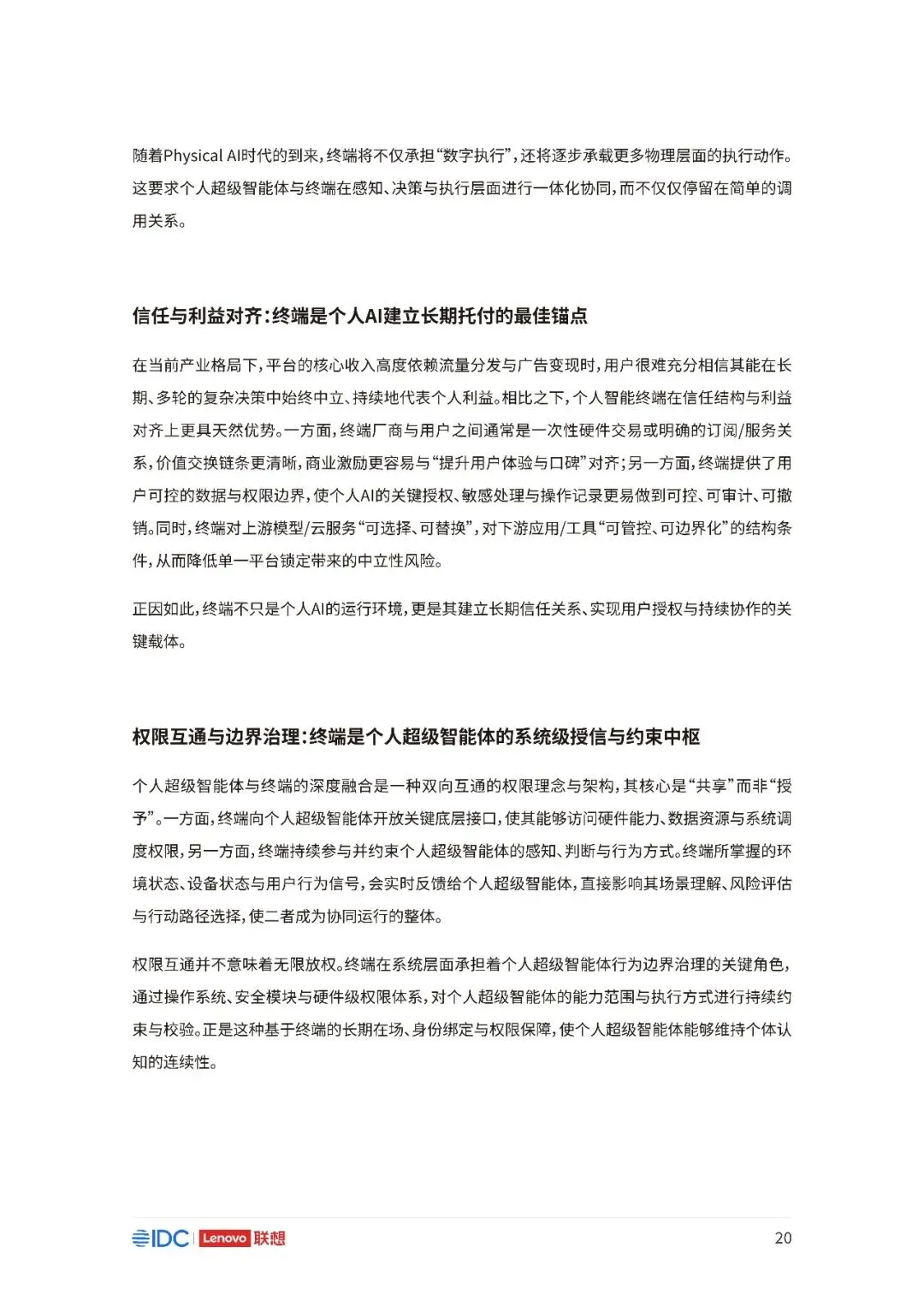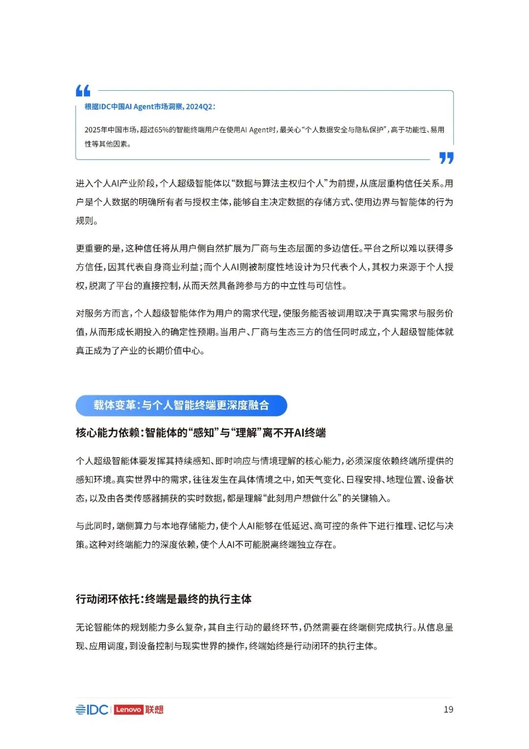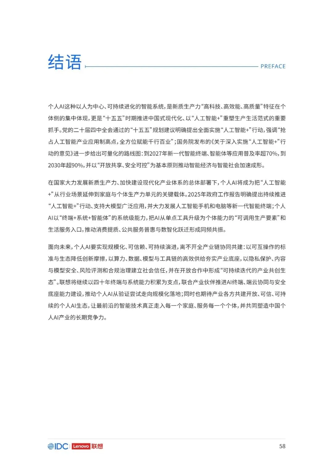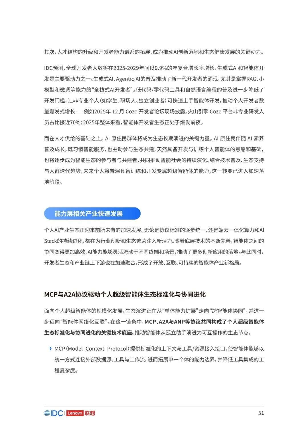 联想与IDC合作发布《个人AI产业定义、产业架构与发展趋势白皮书》。白皮书指出,越来越多的公共AI参与者,也开始从以公共AI为主,向个人AI方向进行迁移,“业界已形成共识,个人AI是未来创新和普惠的关键方向。”