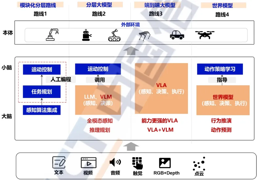 报告显示,具身智能技术仍处于快速迭代的早期阶段,呈现“多路径探索”特点: